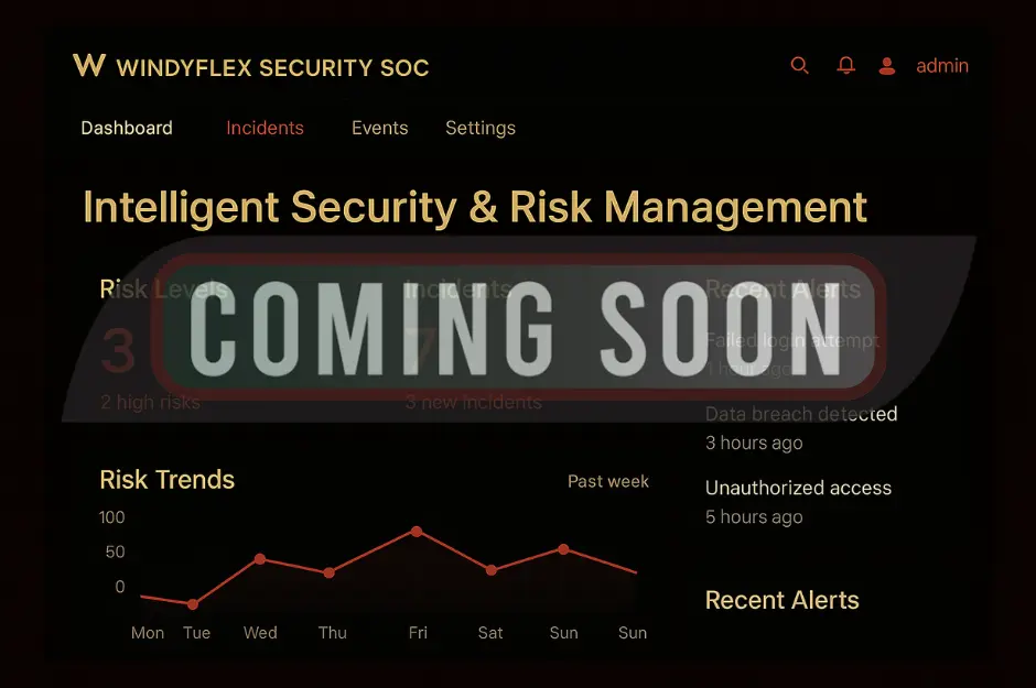 WindyFlex Security safeguards your digital assets with Agentic AI-enhanced cyber risk management, 24/7 SOC monitoring, intelligent incident response, and comprehensive compliance services — including ISO 27001, GDPR, HIPAA, PCI-DSS, RBI, SEBI, and CERT-In directives.